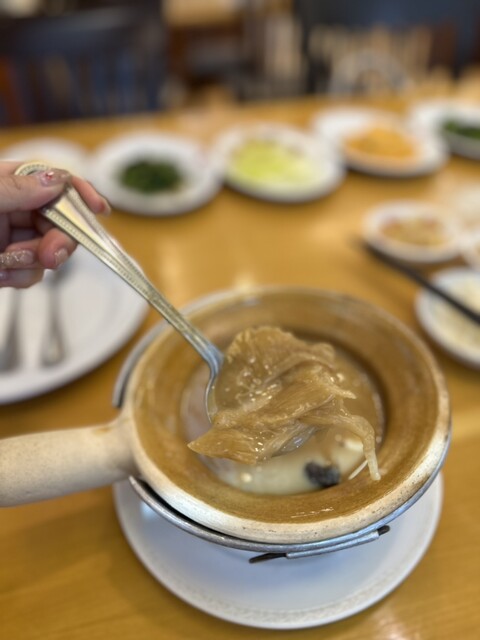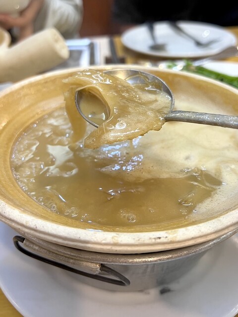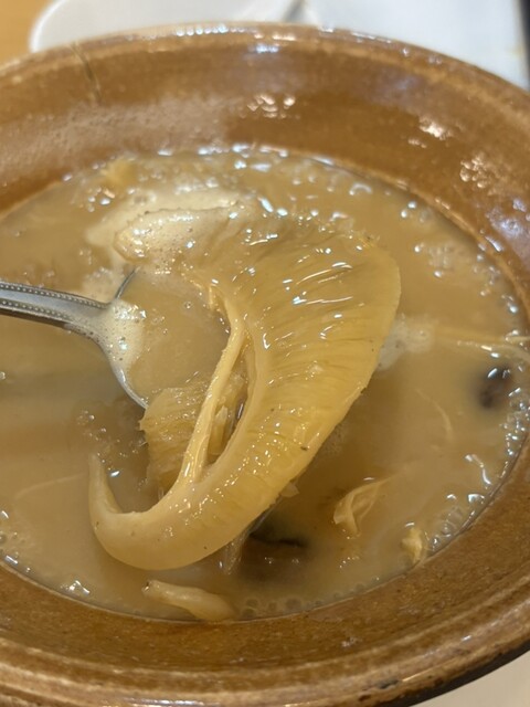 さて、フカヒレですが、スープが美味しいです。フカヒレの食感も心地良く、美味しくいただきました。一緒に入っていたカニの...