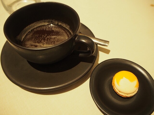 食後にはコーヒーとマカロン。コーヒーは薄くて独特な感じ笑