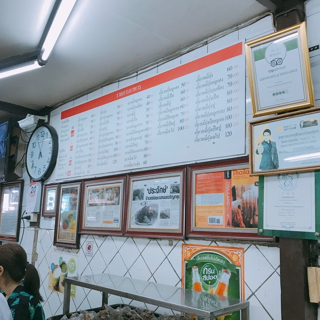 店内に入るとでっかいメニュー表が壁についていますが、タイ語なので分かりません。