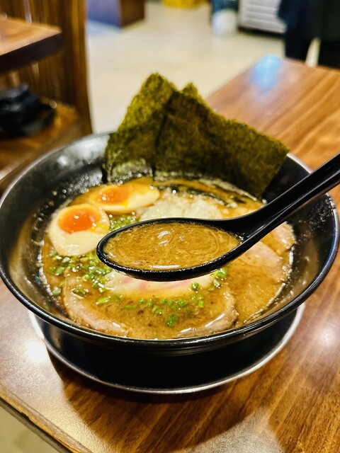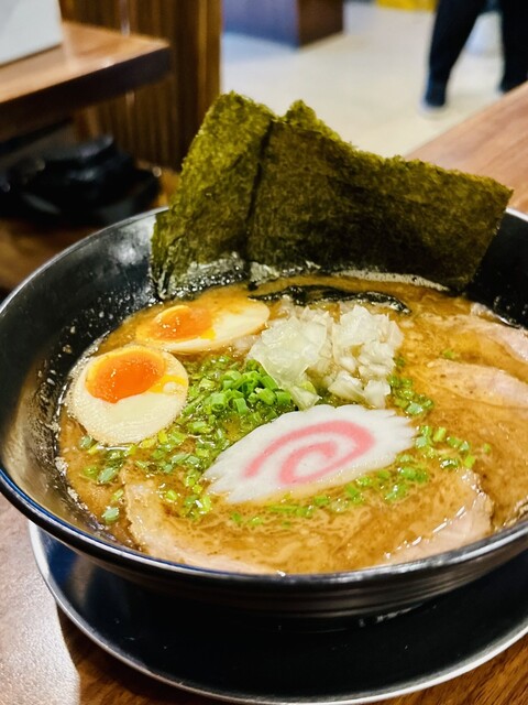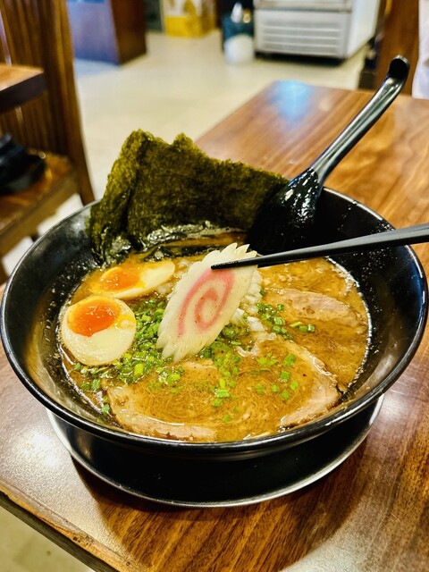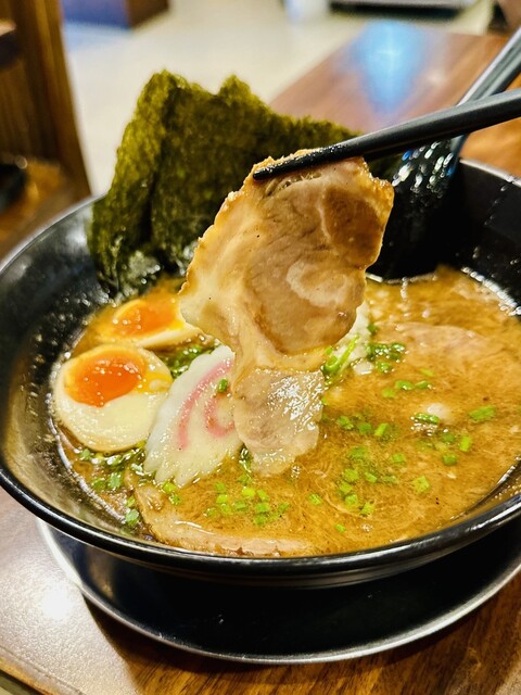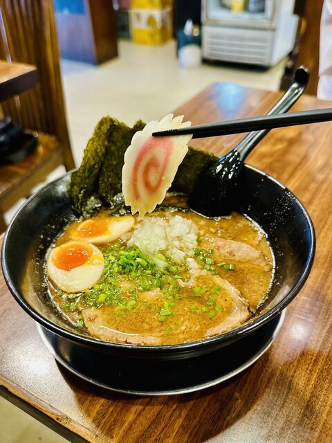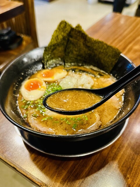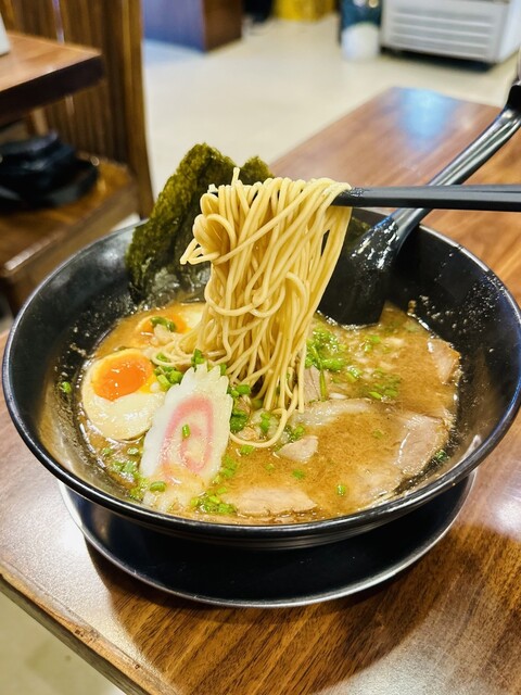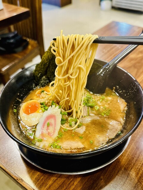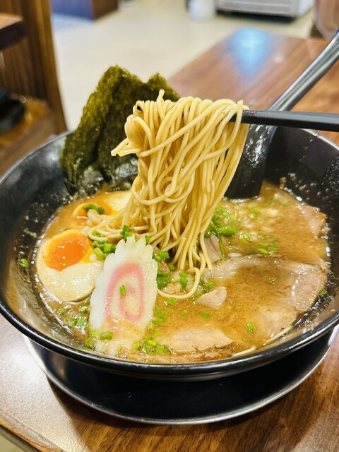 横浜家系ラーメンとは?東京風の醤油ラーメンと、九州の豚骨ラーメンのいいとこ取りをして生み出されたもので基本的に豚骨醤油味です! 豚骨の数種類の部位からから作ったスープに、鶏油を加えているのが特徴となっており、醤油は九州の老舗ヤマタカ醤油を使用!麺は太いストレートタイプが家系ラーメンのスタイル!トッピングには、海苔・チャーシュー・ホウレンソウ・白ネギが添えられています。