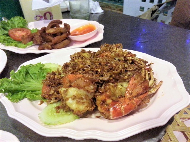 • Talad Nam Seafood - Deep fried prawns with garlic and pepper 450バーツ