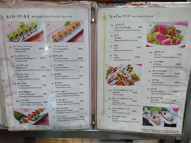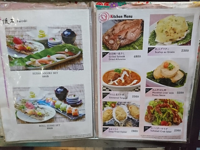 どこか懐かしい感じのメニュー内容ですが、日本で食べる料理とほぼ遜色無い料理をいただきました。ドリンク代込みで1名5000円前後の予算になるので、バンコクでは高級店に位置すると思います。ごちそうさまです。