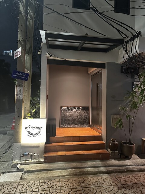 門構えは豚の看板があるだけで、窓が無くて中も見られないため何の店なのか全くわかりません。