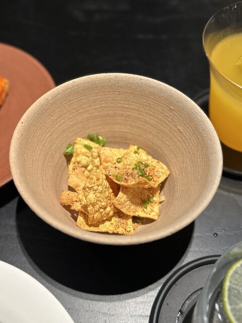 ①香り高いペッパーを添えたタイ産ひよこ豆のクラッカー