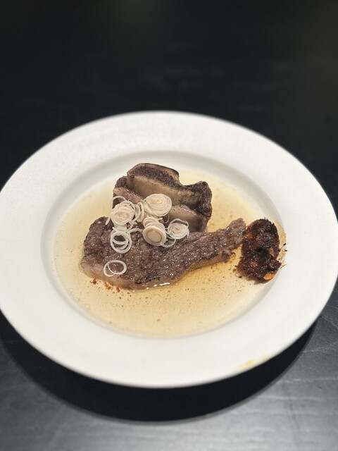 ⑪ショートリブの煮込み、燻製チリペースト添え