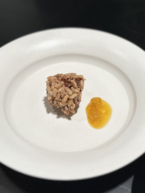 ②発酵茶葉と半生乾燥海老の揚げ物と海老ソース