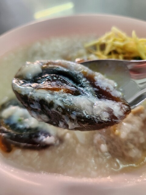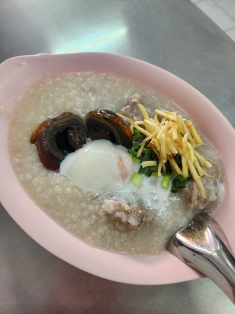 せっかくなので色々入っているピータンと生卵、豚ミンチボール入りの粥をいただきました。日本では考えられないくらいピータンもたっぷり入っていて、豚ミンチボールが絶品。