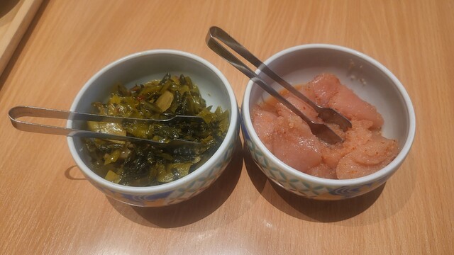 定食と天丼は明太子・高菜・味噌汁・ご飯のお代わり自由が嬉しい。