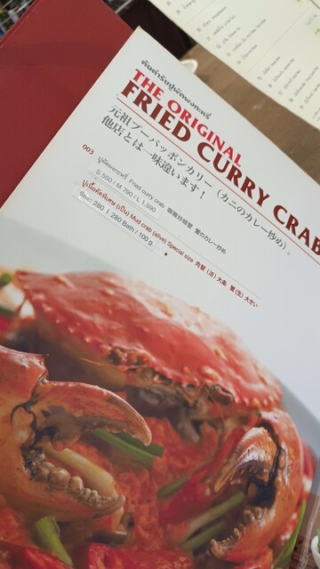 後輩に蟹のカレー炒め (プーパッポンカリー)は絶対食べたいと促しSサイズを選択。