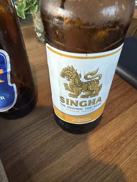ビールはシンハー頼んだら 初めて大瓶を見ました 乾杯