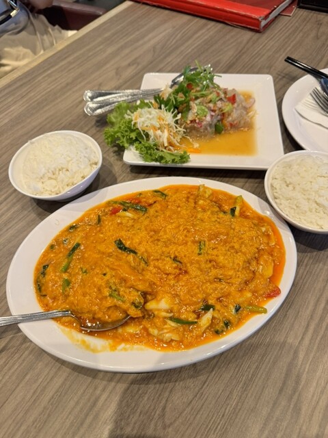蟹をカレーと卵で炒めたプーパッポンカリー発祥の店。