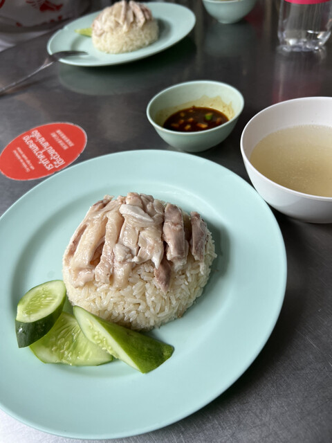 温かいニンニクが効いたご飯に、柔らかい蒸し?鶏肉。