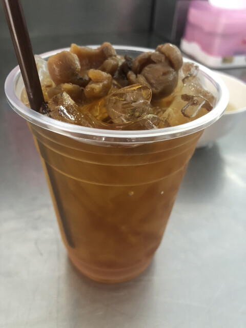 注文はカオマンガイ、血の塊の茹でたもの、空芯菜炒め、飲み物でロンガンティーを頼みました。カオマンガイはめちゃシンプル、鶏と炊いたご飯に茹で鶏、きゅうりです。味もシンプル、美味しいのは確かですが、想像通りですが、値段は300円ぐらいと想像以下。血の塊は、臭みのないレバーのゼリーみたいな感じ、好みは確実に分かれるけど美味しいと思いました。あと、空芯菜もしゃっきり炒められており味も良く、ロンガンティーも甘くて美味しかったです。内容的に特別感動するような料理ではないけど、朝からこのクオリティの料理が日本人感覚からすると格安で食べれるので、観光で来たら是非朝から訪れたいお店です。