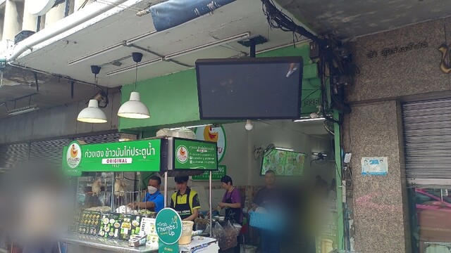 Raan Kaithong Pratunamさんでカオマンガイを食べた後、まだお腹にも夜遊があり(少食なのにね。。)、せっかくなら別の有名店と食べ比べたいと、数十メートル先にあるミドリのカオマンガイで有名なこちらにお邪魔しました。