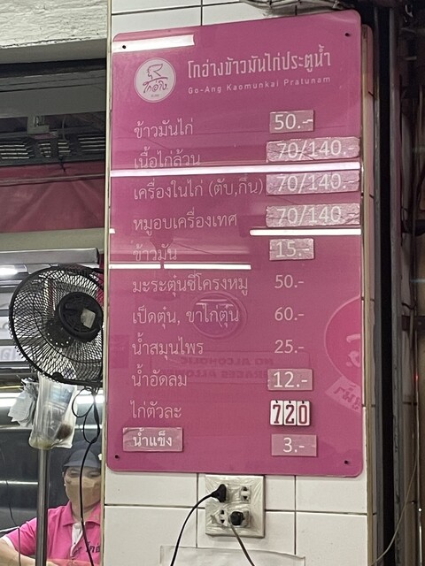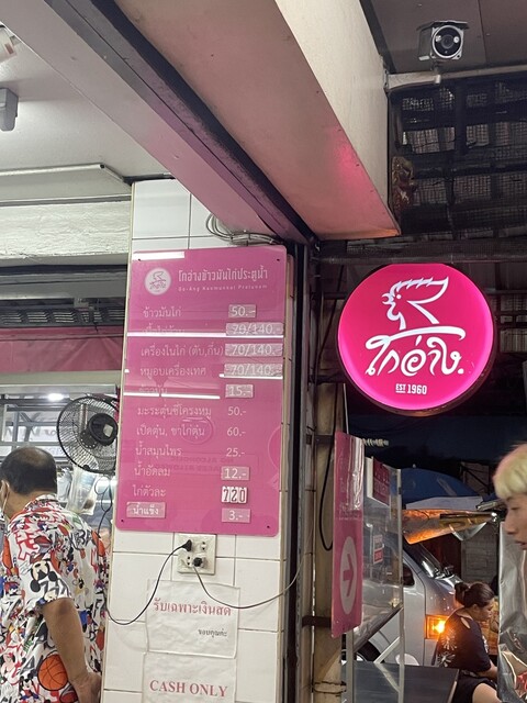 This is a great local restaurant for you to visit while in Bangkok. Yes, the kitchen is in the middle of the space, and there are no walls to separate inside from out. It's similar experience to dining at a food truck or a street side gig. However, the menu is clear, tasty enough, local experience, at a very low price. The chicken rice set (boiled checked, sauce, chicken soup, chicken broth cooked rice) is only 50TBH!