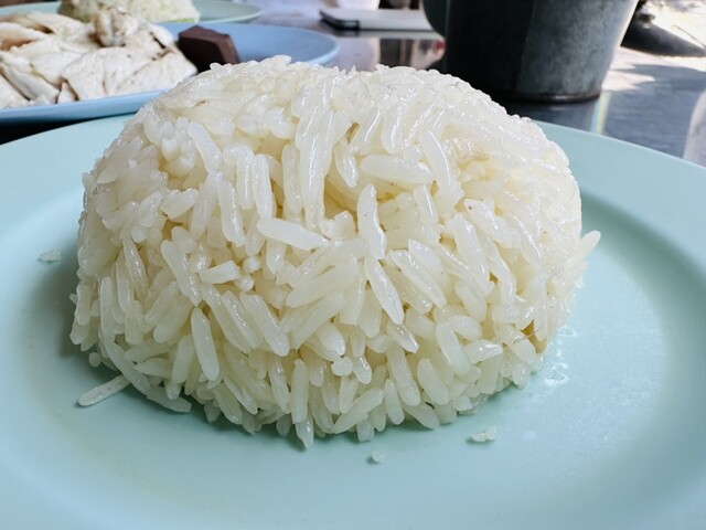 日本のコシヒカリより美味しいと思わす鶏汁で炊いたタイ米は一粒一粒がしっかりしていた