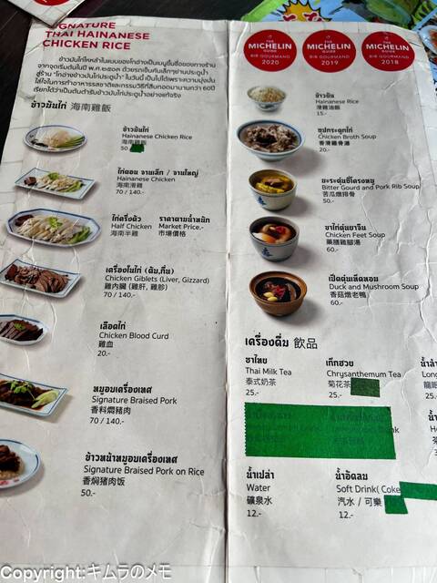 こちらの店はカオマンガイが有名ということで、メニューはほぼカオマンガイ一択。