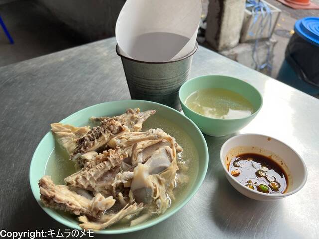 今回はカオマンガイが目的だったのでオーダーは「カオマンガイ(50バーツ(約250円)」と「鶏ガラスープ(20バーツ(約100円)」をオーダーした。