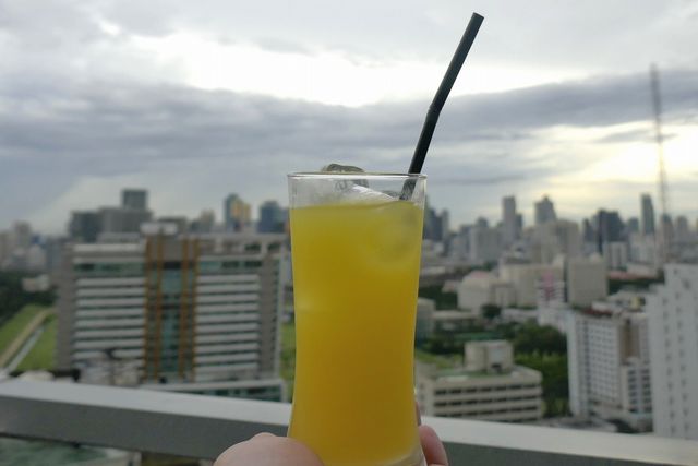 最後は赤みを帯びた甘いオレンジジュースを飲んで初のルーフトップバー体験が終了しました。