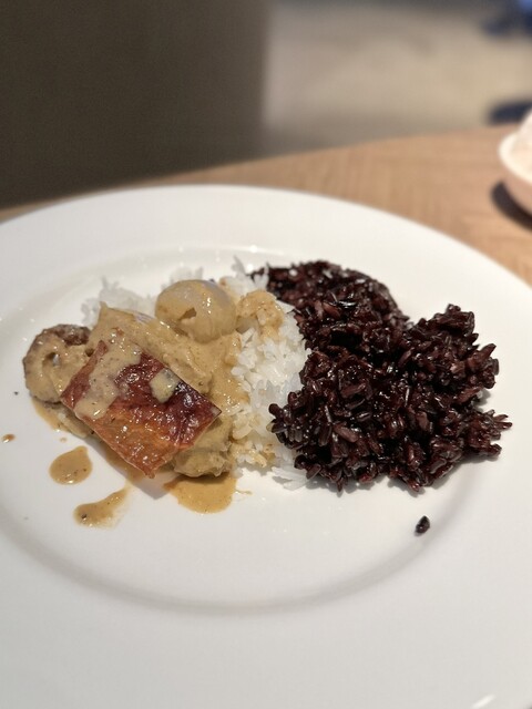 どの料理も新しい食材を取り入れた挑戦的な一面も持ちながら、タイ料理の軸をしっかりと保っているので、驚きと共に程よい安心感もあります。オールドスタイルトムヤムは日本で食べるトムヤムクンとはちょっと違って透明スープで辛さもありません。これはこれでなかなか美味しいです。ホーモックは個人的にかなり好きな料理なのですが、今まで食べたものの中では一番美味しく、クオリティが高いです。ホタテにロンガンを合せてしまうところは挑戦的ですね。メインは「オーストラリア熟成ビーフ」「ローストダック」「ブラックペッパー&タマリンドの海老」の3種からのチョイスで「ローストダック」にしましたが、これが大ハマりでした。ローストダックの皮目がパリッと焼きあがり、ジューシーな肉。更にカレー風味のクリーミーソースがホントに素晴らしく美味しい。デザートと小菓子も想像以上に美味しいです。最初から最後まで全ての料理が一定以上の高いクオリティをキープしていた印象でした。とても良いお店でしたね。