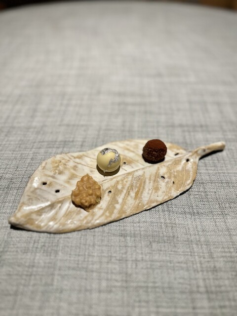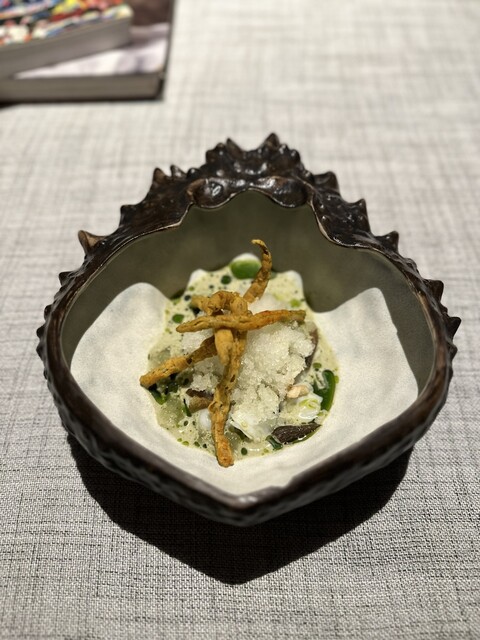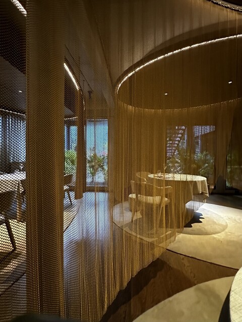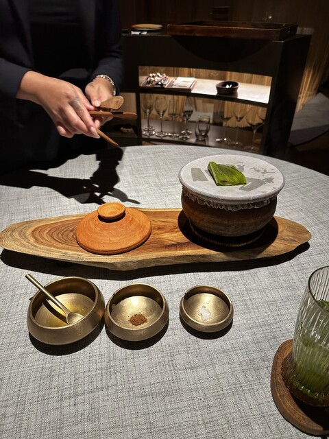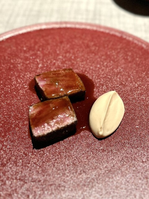 私にとっては未知の体験でしたね。次に来る料理がどんなものなのか全く予想が付かない。一皿目の真っ赤な大きな丸いタブレットはどんな味がするのかと思ったら、甘酸っぱく冷たいビーツのソルベでした。ブルースイマークラブやザリガニとビンロウなど珍しい食材も見慣れた食材も、調理や意外な食材のマッチングにより、今まで食べた事が無いものに変化しています。最も驚いたのは「ドリアンのタンドゥーリ」小さなドリアンにその実を材料とした詰め物をタンドゥーリで焼き、という発想も凄いですが、更に日本では見慣れない「ローゼルの実」から作ったクリーミーで酸味のあるソースをたっぷりとかけ、香草ロティの上に乗せ、ピクルスと共にいただきます。甘酸っぱく、ドリアンのねっとりとした食感。しかし鮮度が高く、更に焼いているのでドリアン独特の臭みも僅か。いろんな香りが入り混じって完全なる未体験ゾーンに突入しました。これは素晴らしいスペシャリテと言えるんじゃないでしょうか。A4和牛がメインで終わっていたらだいぶがっかりしたでしょうが、一気に満足度が高まりました。デザートは小技は効いていますが、割と想定内ですね。イノベーティブ要素は結構強めでとても面白いお店でしたね~。もし日本にあったらどうでしょう。日本だとどうしても食材ばかりに目が行ってしまう人が多いので、細かいところにで引っかかって全体観での評価が得られにくいかもしれません。私は大満足でありました。