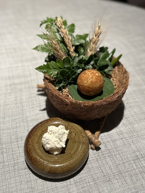⑥カリフラワーブレッドとジンジャーサワークリーム、自家製バター
