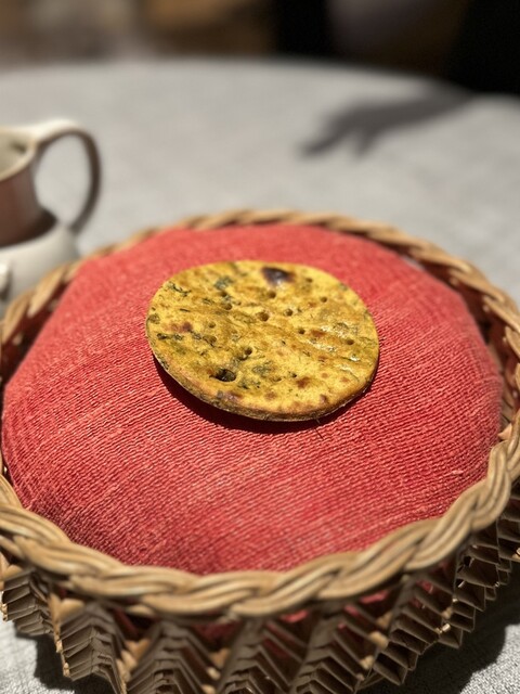 ⑪ドリアンのタンドゥーリ、ローゼルのディップ、香草ロティ、ピクルス