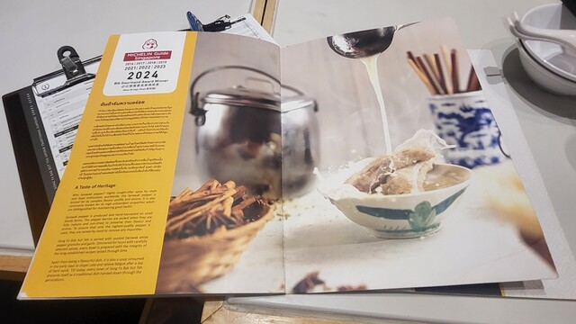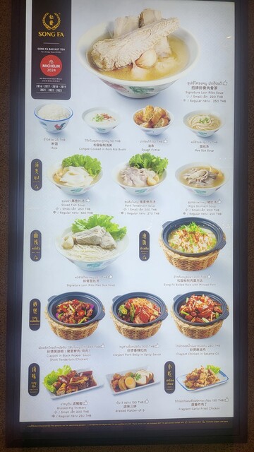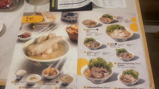 Pork Tenderloin Mee Sua Soup 220THB, Signature Lain Ribe Soup R 250THB, Dough Fritter 50THB(VAT, サ料別)