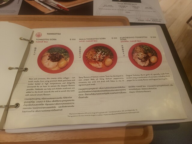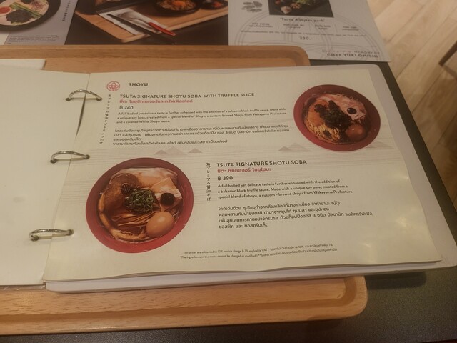 蔦プレミアム醤油そば390THB、肉飯170THB、緑茶50THB(VAT, サ別)