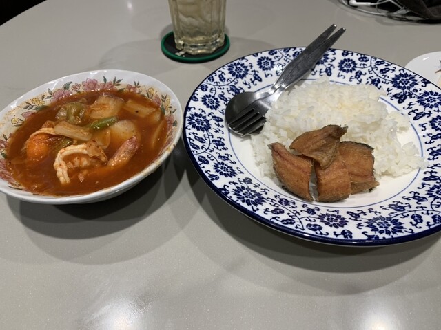 高級ショッピングモール内レストラン、ミシュランガイド他お勧め店なので、ウォーキングがてら、汗かき40分歩いて来てみました。お得な平日ランチ、塩炊きライス+塩揚物、レッドカレーは辛さより酸味。女性シェフなのもうなづけます。ビールはジョッキ共にキンキンに冷えてます。
