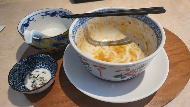 担々麺まぜそばを山椒マシマシ発注したら量が少ないと言うことなので貝だしを追加して先に頂きました。
