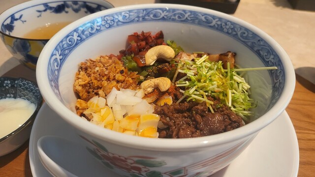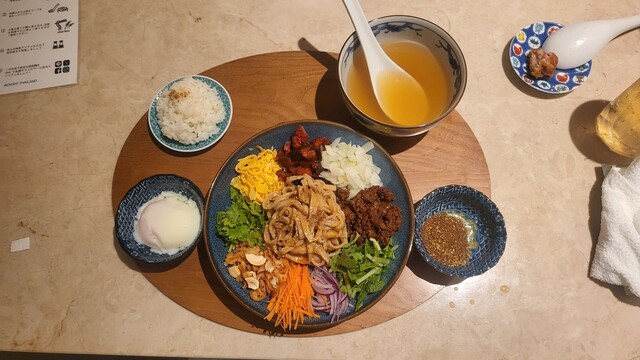 担々麺まぜそばを山椒マシマシ発注したら量が少ないと言うことなので貝だしを追加して先に頂きました。