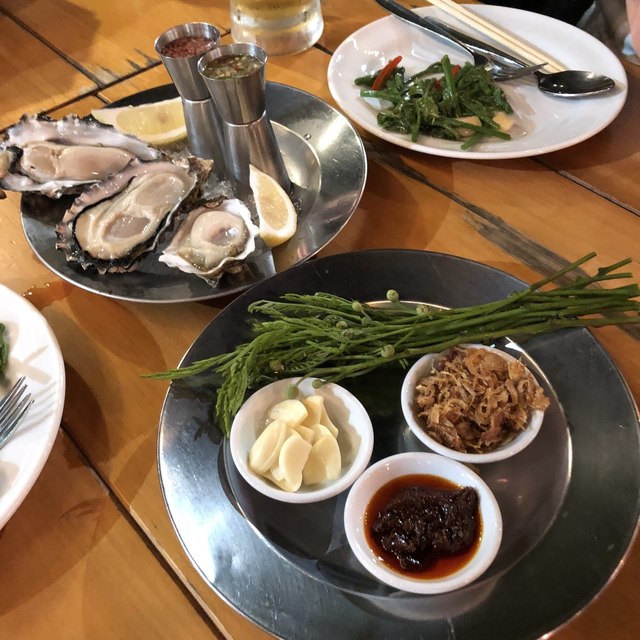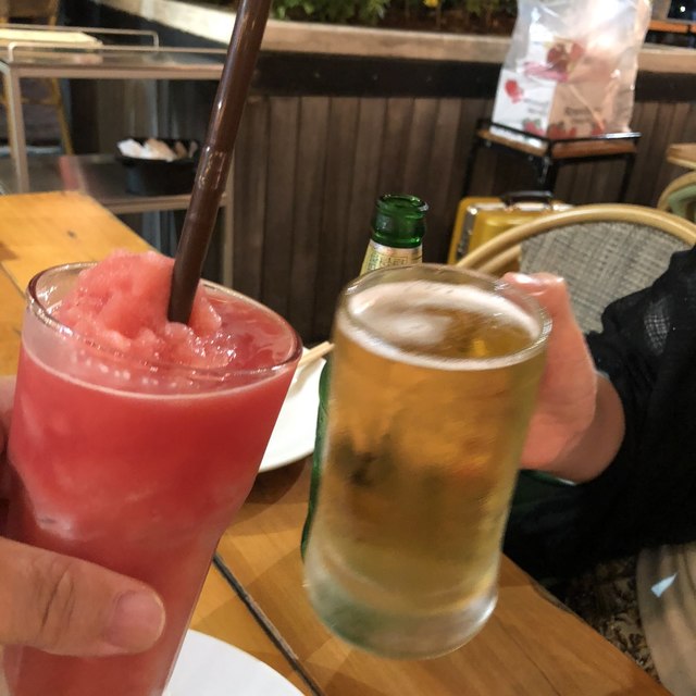 ムエタイ観戦を終えて、レストランを見て回り、海鮮のお店に入ってみた。海老のフリッター、生ガキ、空心菜をスイカのジュースとともに頂いた。エイシャンティークのお店は、日本人感覚でも十分に清潔感があって、入りやすいし、過ごしやすい。