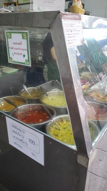 バンコク滞在最終日の朝食は、宿泊しているホテルからBTSでスラサック駅へ。駅から徒歩10分ほどでしょうか、賑やかなヒンドゥー教寺院が目に飛び込んできました。お店は通りを挟んで目の前にあります。日本語で店名が書いてありますよ。店員さんは多いですね。口頭注文後払い φ(..)