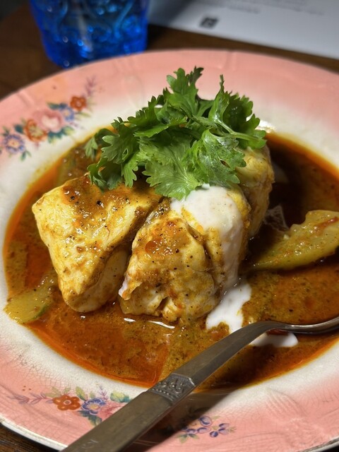 ️ハタ、キュウリ、長胡椒の香り豊かなカレー