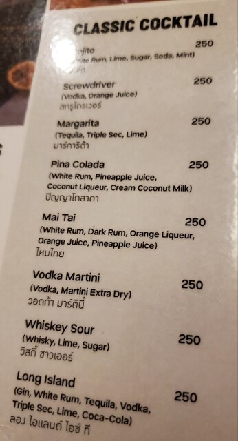 今回のバンコク後半滞在では、朝食は街へ繰り出して食べるスタイルにしたので、ホテルのレストランは基本的に使いませんでした。なのでホテル飲食履歴を残そうと、夜寝る前に軽く一杯飲もうと21時半頃プール横のレストランへ。口頭注文後払い φ(..)