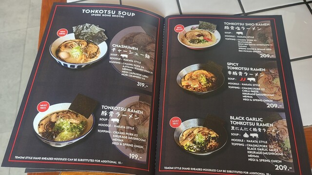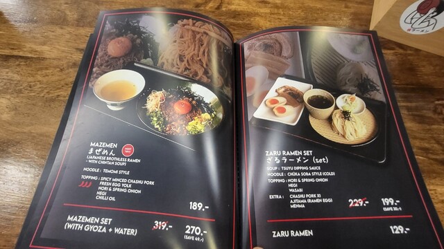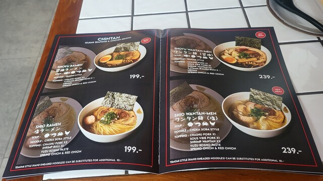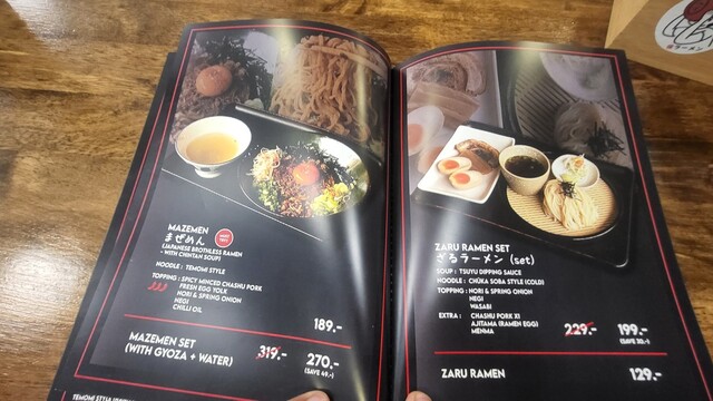 ワンタン麺(塩)239THB、ざるラーメン129THB, Ajitama29THB
