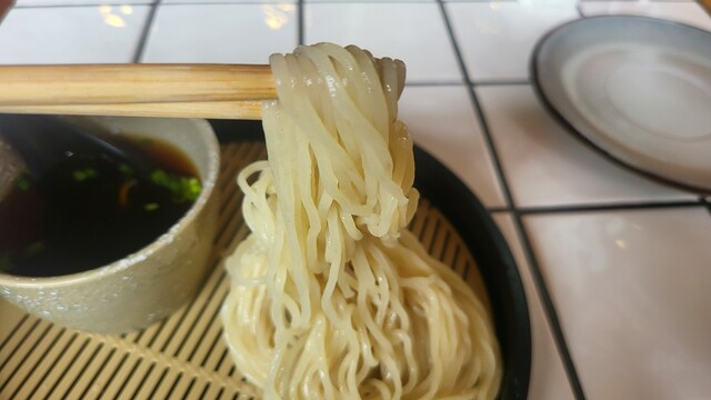 鶏ベースで貝と甲殻類の旨味と香り、パッつん細ストレート麺うまし。