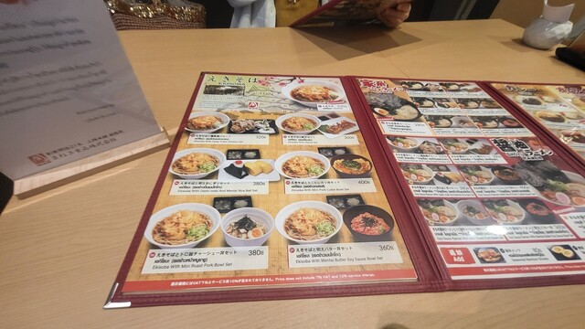 えきそばと鶏唐揚セット320THB、姫路風たこ焼き200THB(VAT, サ料別)