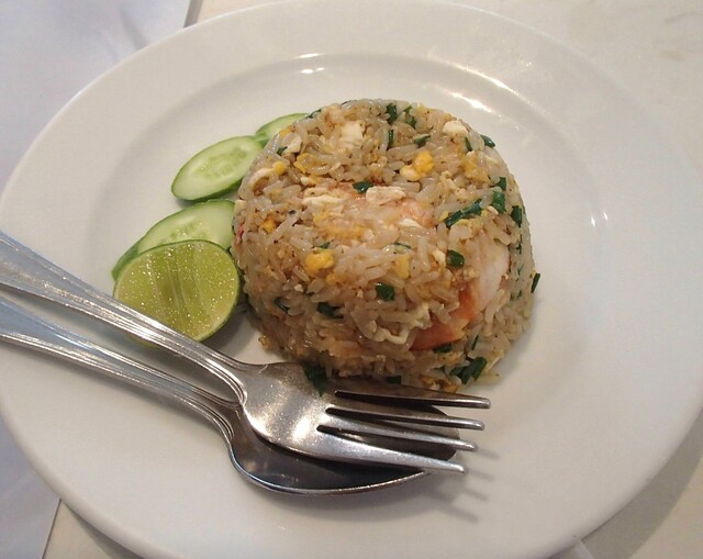 タイ米のサラッとしたチャーハンに、エビが2,3個ほどゴロリと入っていました。