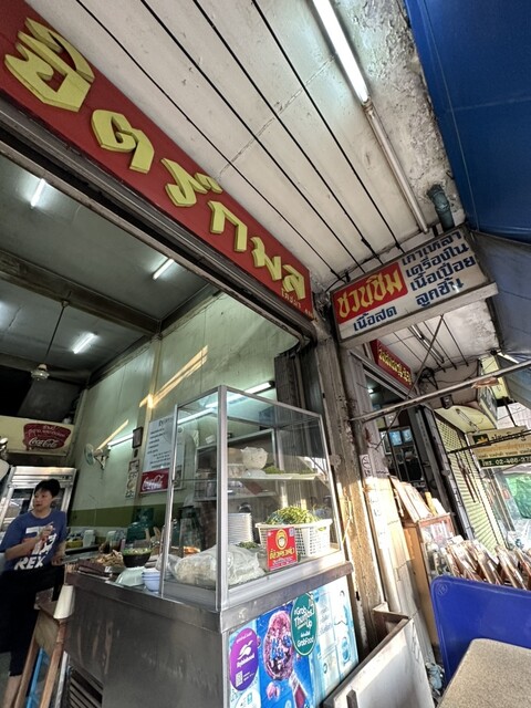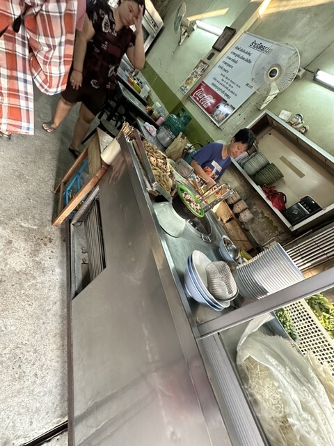 Wongwian Yai駅のすぐ手前で列車に乗る前に腹ごしらえ。
