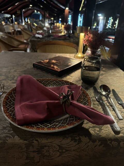 受付の時間になると、リバーサイドの専用レストランで コース料理が出てきます♪