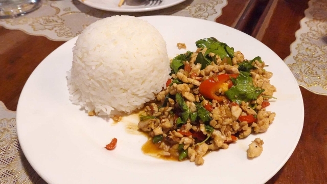 挽肉のバジル炒めです。