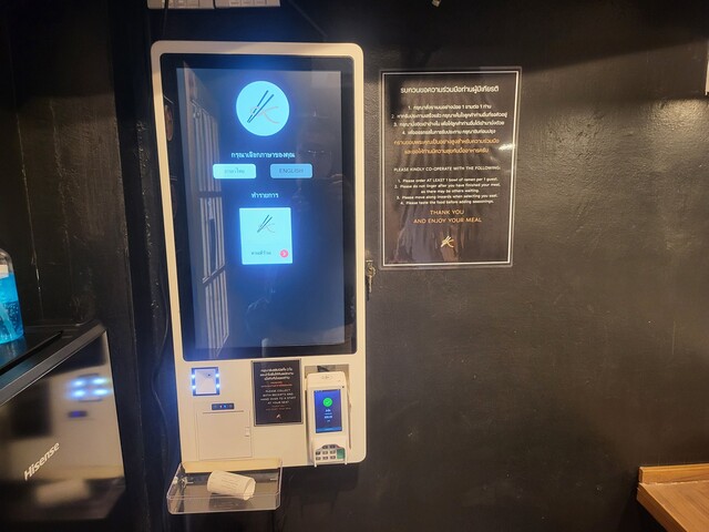 麺のメニューは塩、魚介豚骨、カラシビ味噌、イカスミつけ麺、豚骨。何故だかホタルイカの沖漬けがある。居酒屋には結構おいてあるが結構需要があるのか?そう言えば三越にも大量に売ってた。謎。因みに私以外店員さん含め殆どタイ人。12席カウンターのみだが全部埋まった。選んだのはイカスミつけ麺。こっちでは珍しい太麺。勿論最初は塩で頂くと風味豊かで歯応えが有り(゚д゚)メチャウマー♥️つけ汁はイカの香りに先ずKNOCK OUT。イカスミの旨味が凝縮されこらまた素晴らしい。チャーシュー三種に細切り焼きメンマもピンクペッパー、レモン、ニンニクと味変アイテムも良き。最後はスープ割り。魚介だしにゆずも加わり更に卓上の酢を入れサッパリ完飲完食。また来てもイカスミ食べそう。