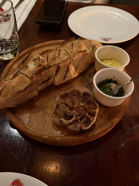 お肉は脂身も程よくある赤み部位で美味しかったです。無料でついてくるガーリックバターパンも美味です^_^