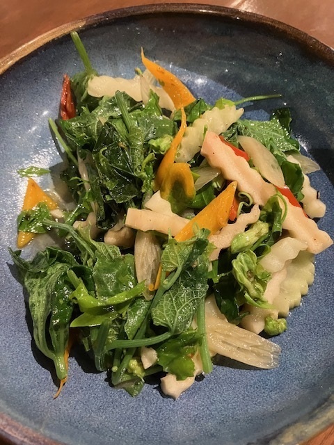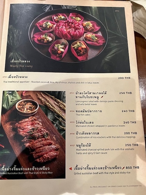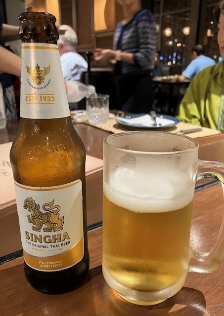 注文したのは、前菜2人前、SHINGHAビール、マッサマンカレー、空心菜、ガパオライスです。ライスは紫色のお米をお願いしました。価格帯はやや高めの設定です。時間かからずに順番に出て来ます。どれも美味しき頂きました。
