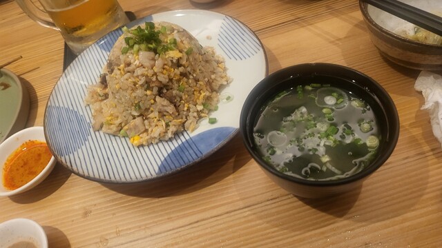 ビールに餃子、手羽先、手羽先、やみつきキャベツ、麻辣奴、鶏皮、塩もつ鍋等々食べてからの〆らー。