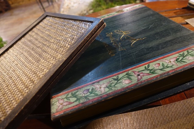 滝(?)のようなものがあり蚊が多い。「この店は虫除けを用意してるから」と、手馴れた様子でそれを求める。ケミカルなクスリというよりは、強烈なハーブのエキスといった赴き。爽やかな香りに異国情緒が増幅される。メニューが子供の頃のアルバムのように分厚い。大きな写真がたくさん載ったメニューであるため、外国人であっても用意に指差し注文することができます。というか客のほとんどは外国人です。