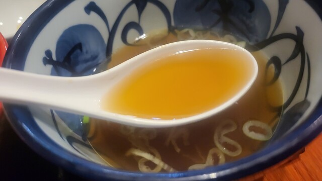 太麺は最初清湯スープに浸して食べうまい。