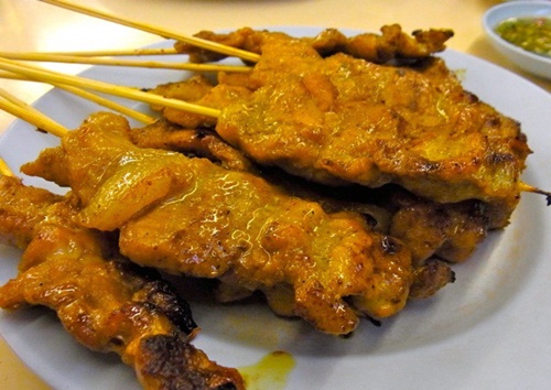 ムーサテー(焼き鳥ならぬ~「焼き豚」)ですね シンガポール名物です 美味しそう~~